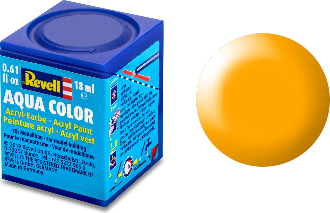 Revell - Aqua Color Akryl Maling i silke gul (Ral 1028) er det ideelle valg til både hobbyprojekter og professionelle kunstnere, der ønsker at tilføje livlige farver til deres værker. Med en pakke på 18 ml får du præcist den mængde, du behøver for at skabe fantastiske detaljer.
