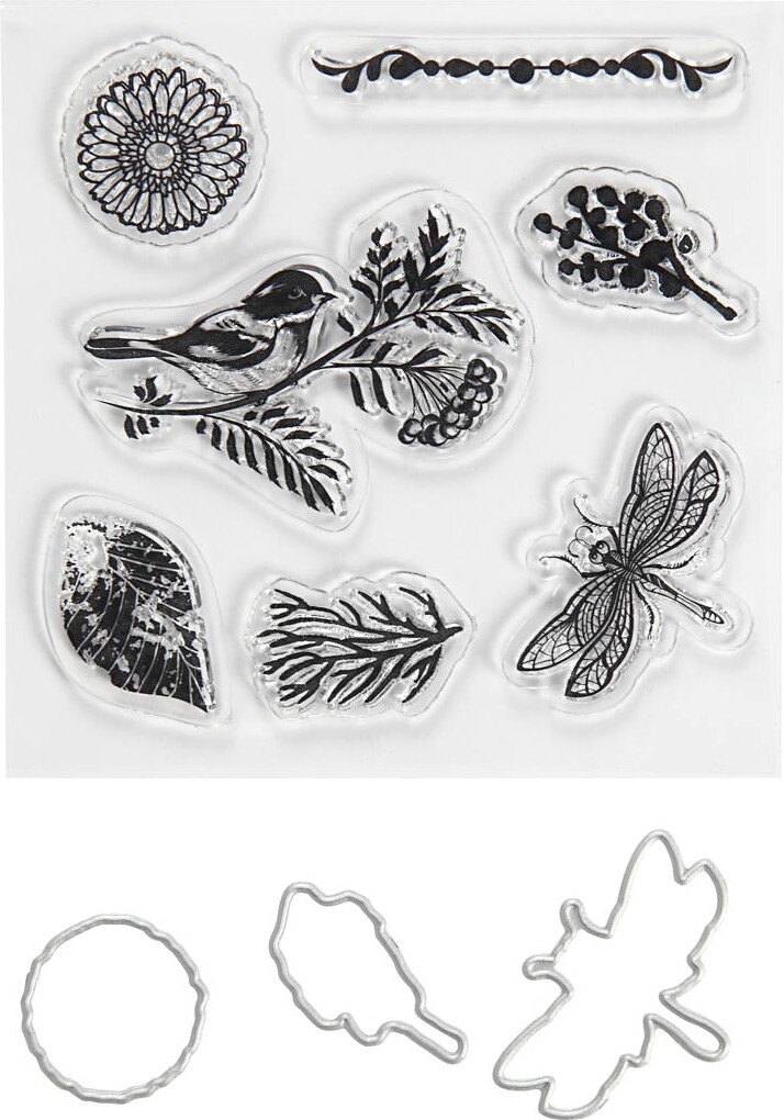Sæt med klare siliconestempler, som kan kombineres med de medfølgende stanseskabeloner. Til udstansning i karton, papir, kort og lign. Anvendes i stanse- og prægemaskine - varenr. 11761, 11792 og...