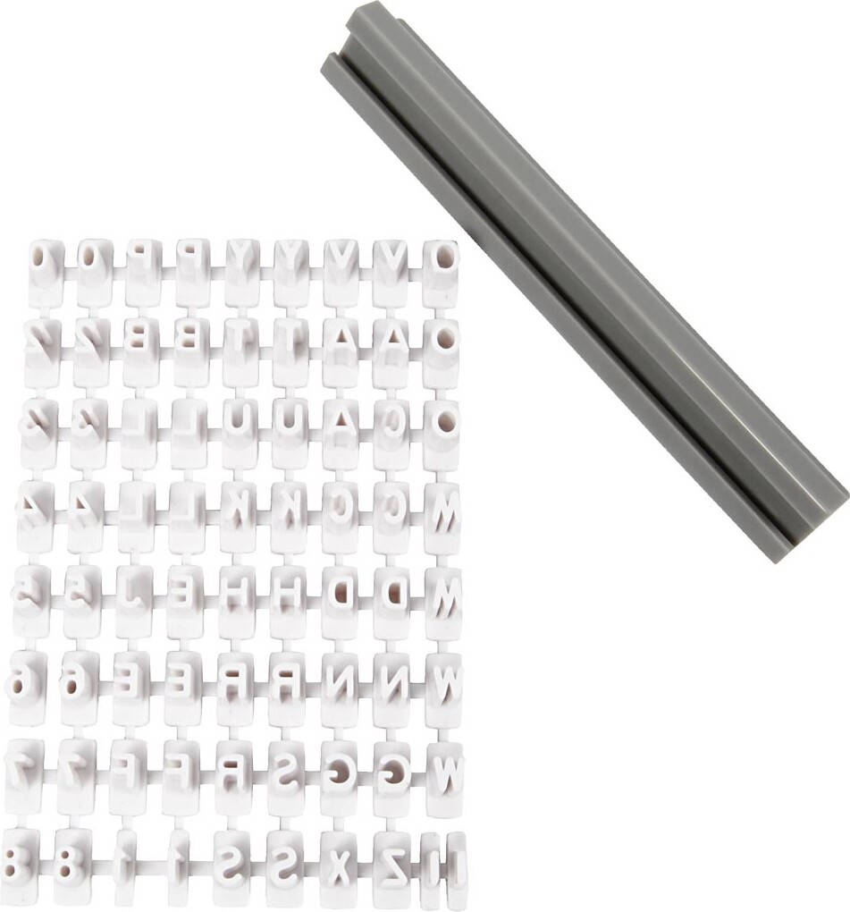 Nu kan du sætte dit mærke på dine kreative kreationer på en helt ny måde. Dette stempelsæt er af hård plast, og giver dig mulighed for at stemple forskellige bogstaver, tal og tegn ind i bløde...
