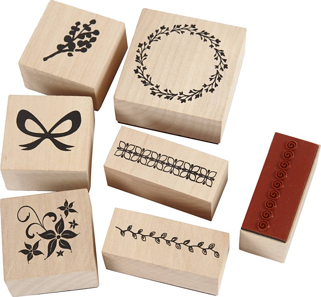 Skab flotte dekorationer med dette stempelsæt. Dette sæt indeholder 7 assorterede stempler med træskafter og trykflader i gummi med detaljerede naturmotiver. Stemplerne passer perfekt til en masse...