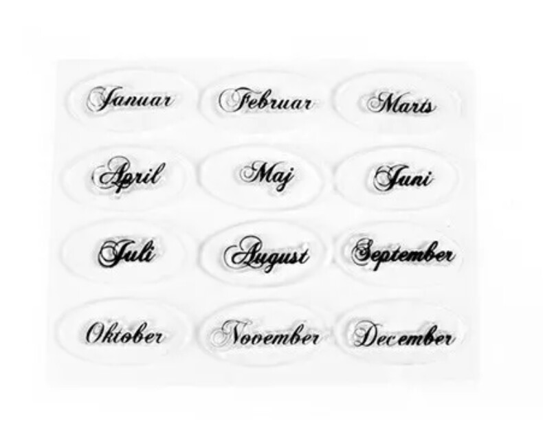 Dette sæt indeholder 12 silikonestempler, der hver repræsenterer en måned i året. Motiverne er ca. 22x45mm og er perfekte til at dekorere kalendere, planlæggere, dagbøger og scrapbooks....