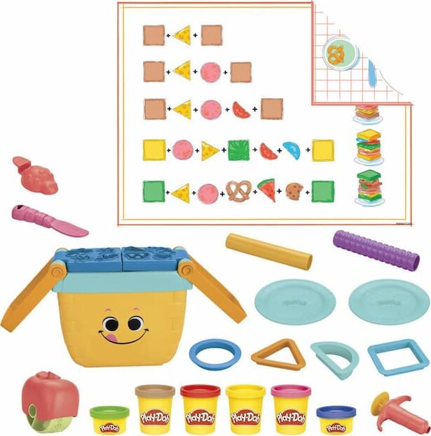 Uanset vejret er Picnic Shapes Starter Set et perfekt picnic-sæt til børn når som helst! Der medfølger 12 begynderredskaber, 6 Play-Doh-farver og en legetøjs-picnic-kurv med plads til...