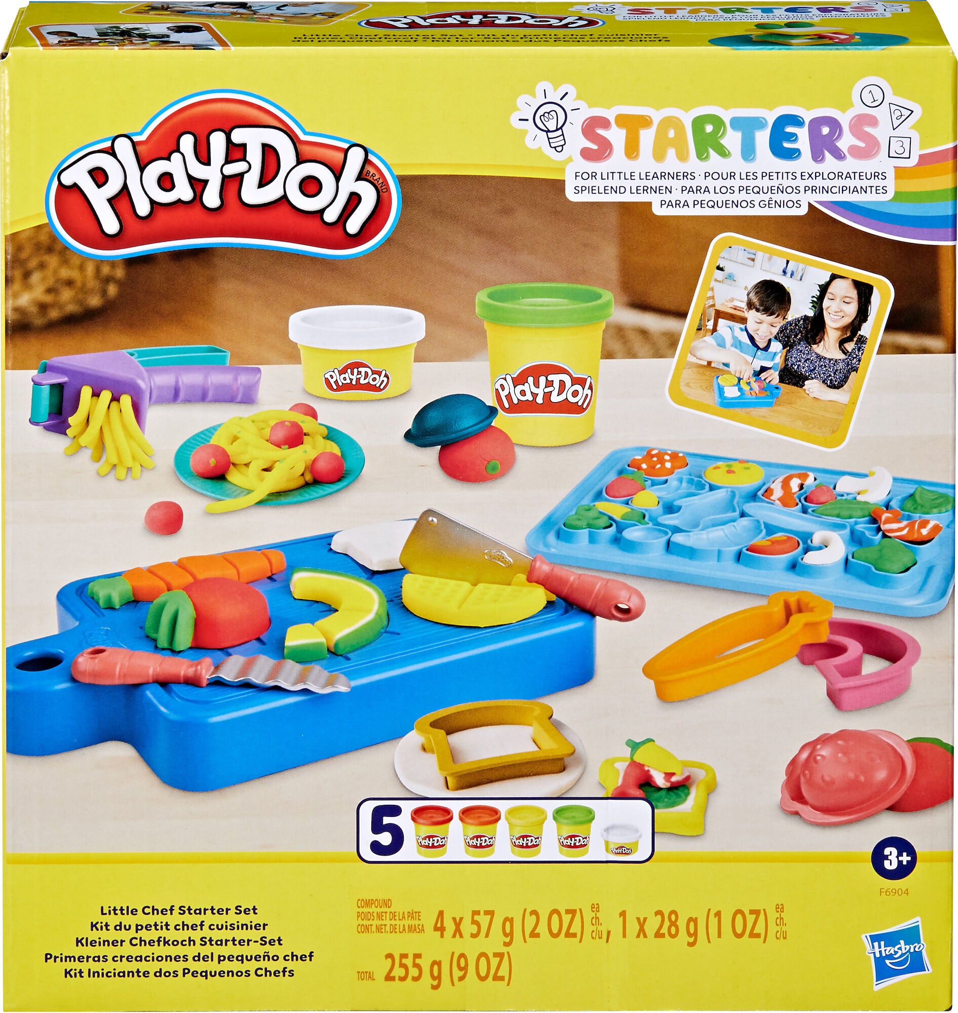 Little Chef starter-set fra Play-Doh med tilbehør, der egner sig til leg i et legekøkken. Det har fem modellervoksbøtter i forskellige farver og tallerkener, som Play-Doh-kreationerne kan serveres på. Starter-settet har forme, cuttere og et skærebræt. Perfekt til den lille mesterkok. CE-mærket. Indeholder 5 bøtter med Play-Doh. Flere stykker tilbehør medfølger. Anbefalet alder: Fra 3 år.