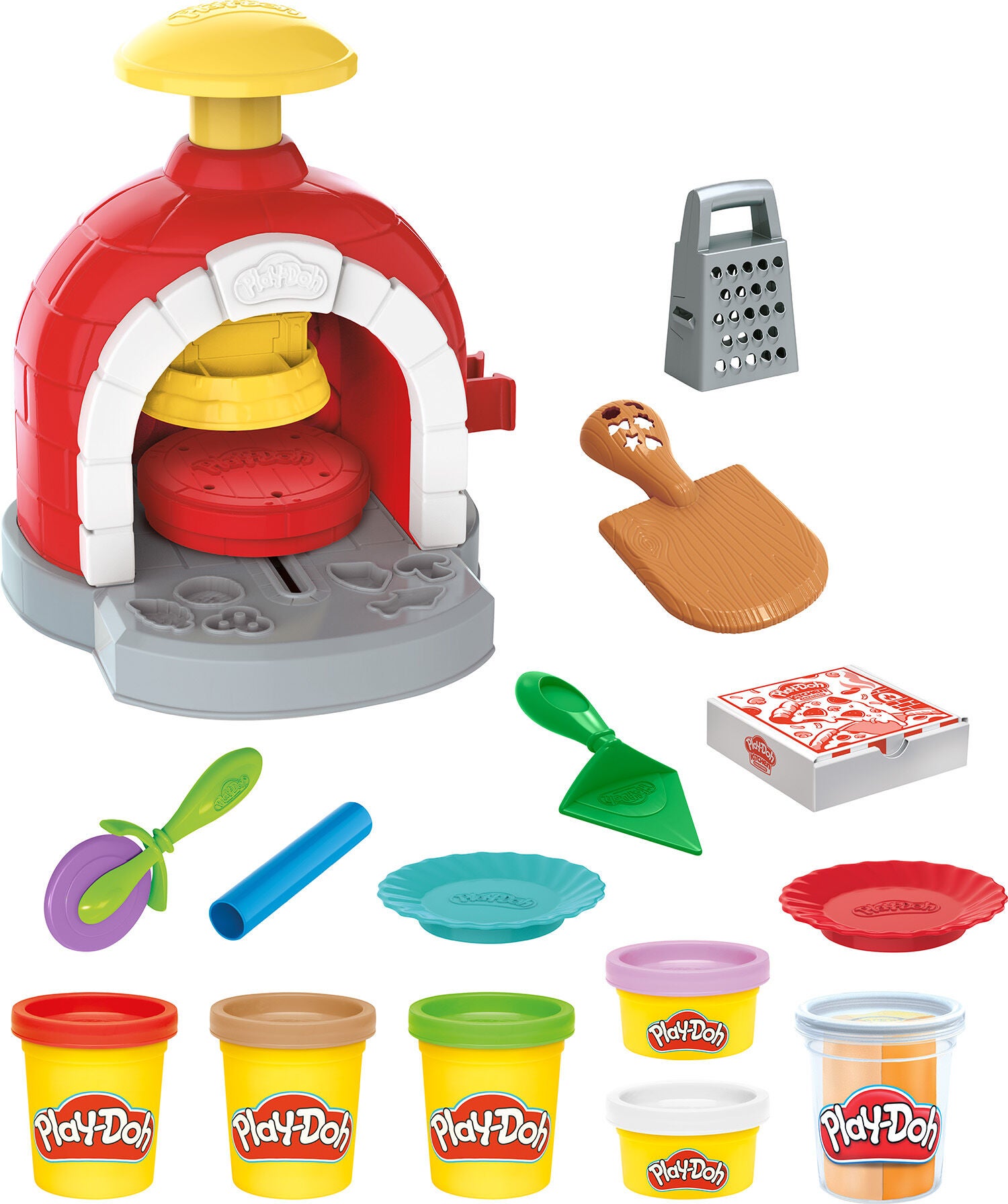 Modellervoks fra Play-Doh. Drømmen om at åbne dit eget pizzeria er ikke langt væk med dette legetøjssæt. I dette pizzaovnssæt får du din helt egen legeovn med en form bagpå, hvor du kan lave alle dine toppings, og der medfølger også værktøj, rivejern, tallerken og en pizzaæske, så pizzaen kan blive klar til levering. Sættet indeholder også seks Play-Doh-bøtter med rød, brun, grøn, hvid, lyserød og trefarvet modellervoks. Perfekt til den lille kok! CE-mærket. Anbefalet alder: Fra 3 år. Ikke egnet til børn under 3 år. Batterier medfølger ikke.