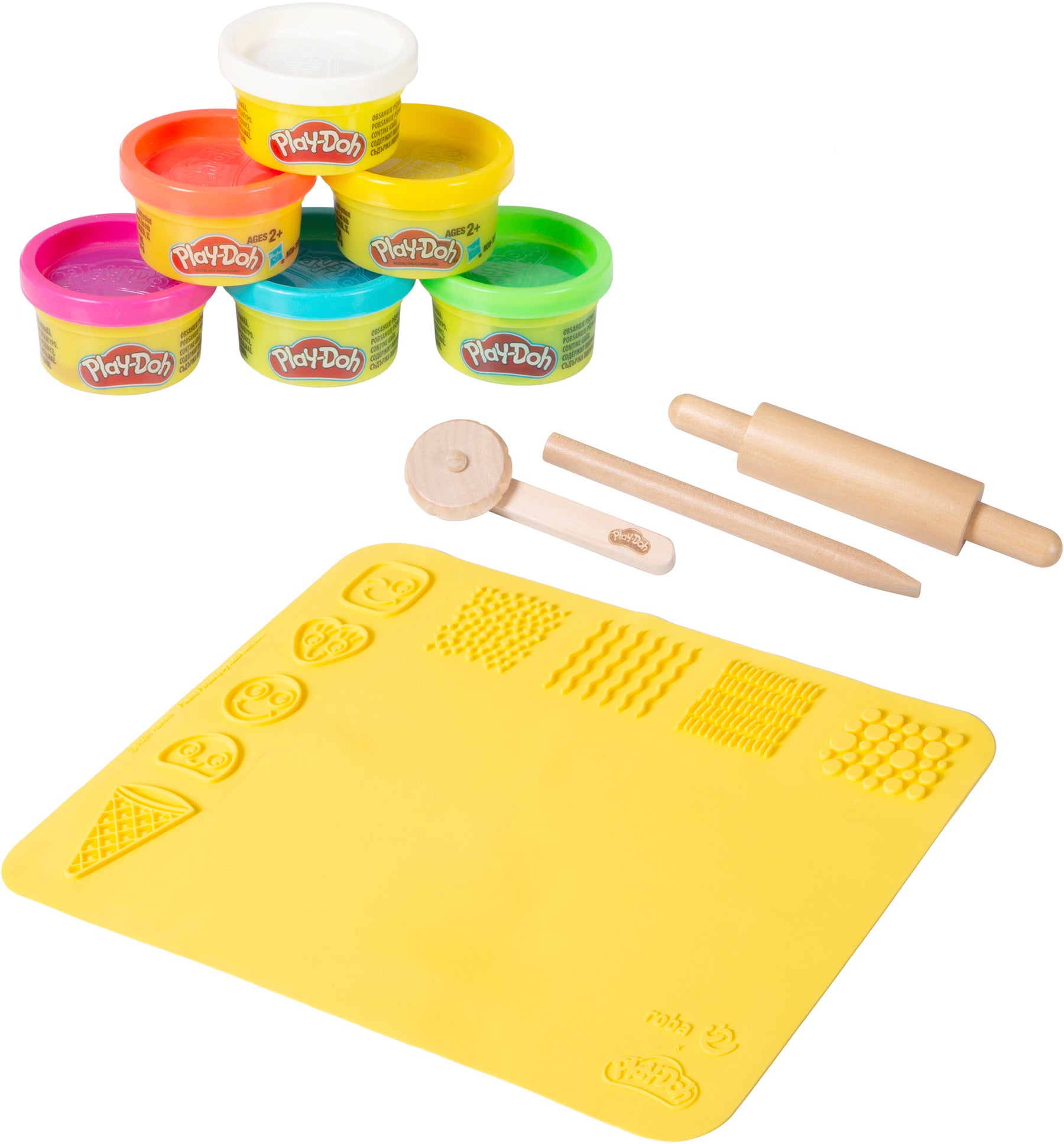 Legesæt fra Play-Doh med alt tilbehør for at komme i gang skal du bruge. Perfekt til kreative stunder. - Indeholder: 1 kreamåtte, 1 kagerulle, 1 pizzaskærer, 1 modelleringsværktøj, 6 bøtter med Play-Doh. - Hver bøtte indeholder 28 gram Play-Doh. - Kun fantasien sætter grænserne. - Let at forme. - Perfekt til træning af dit barns hånd-øje-koordination og finmotorik. - CE-mærket. - Anbefalet alder: Fra 3 år. - Træ, BPA-fri silikone.