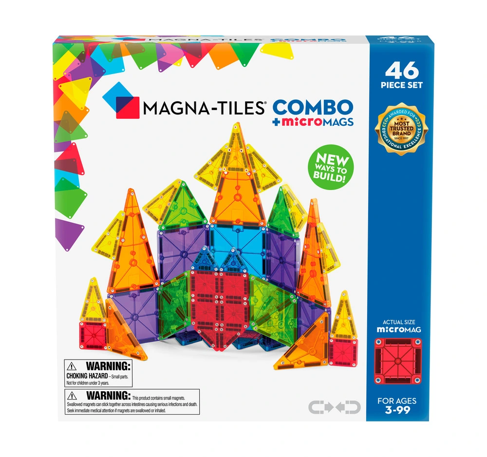 MAGNA-TILES microMAGS Combo – 46 dele tilbyder en spændende kombination af klassiske og mikrofliser, der åbner op for nye dimensioner af kreativ leg og læring.