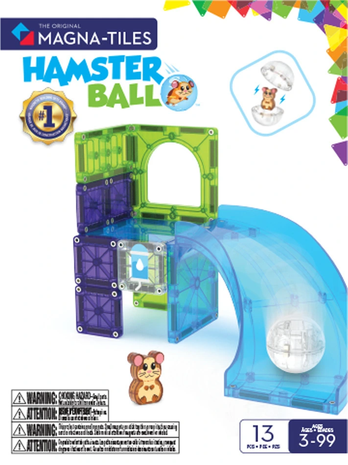 Den lille magnetiske hamsterfigur er ikke bare sød – den kan bevæge sig inde i kuglen og rulle ned ad rutsjebanen. Det gør legen dynamisk og giver ekstra motivation for at bygge baner, ramper og forhindringer, som hamsteren kan boltre sig i.