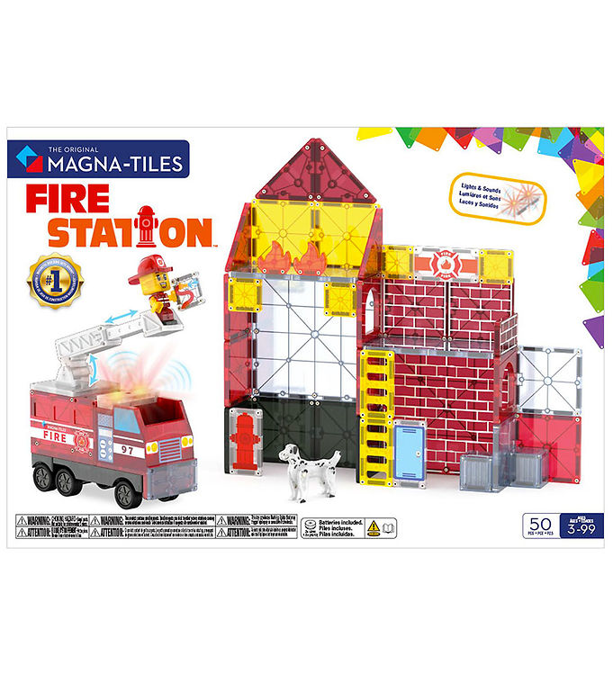 Magna-Tiles Magnetsæt - 50 Dele - Fire Station + MicroMAGS