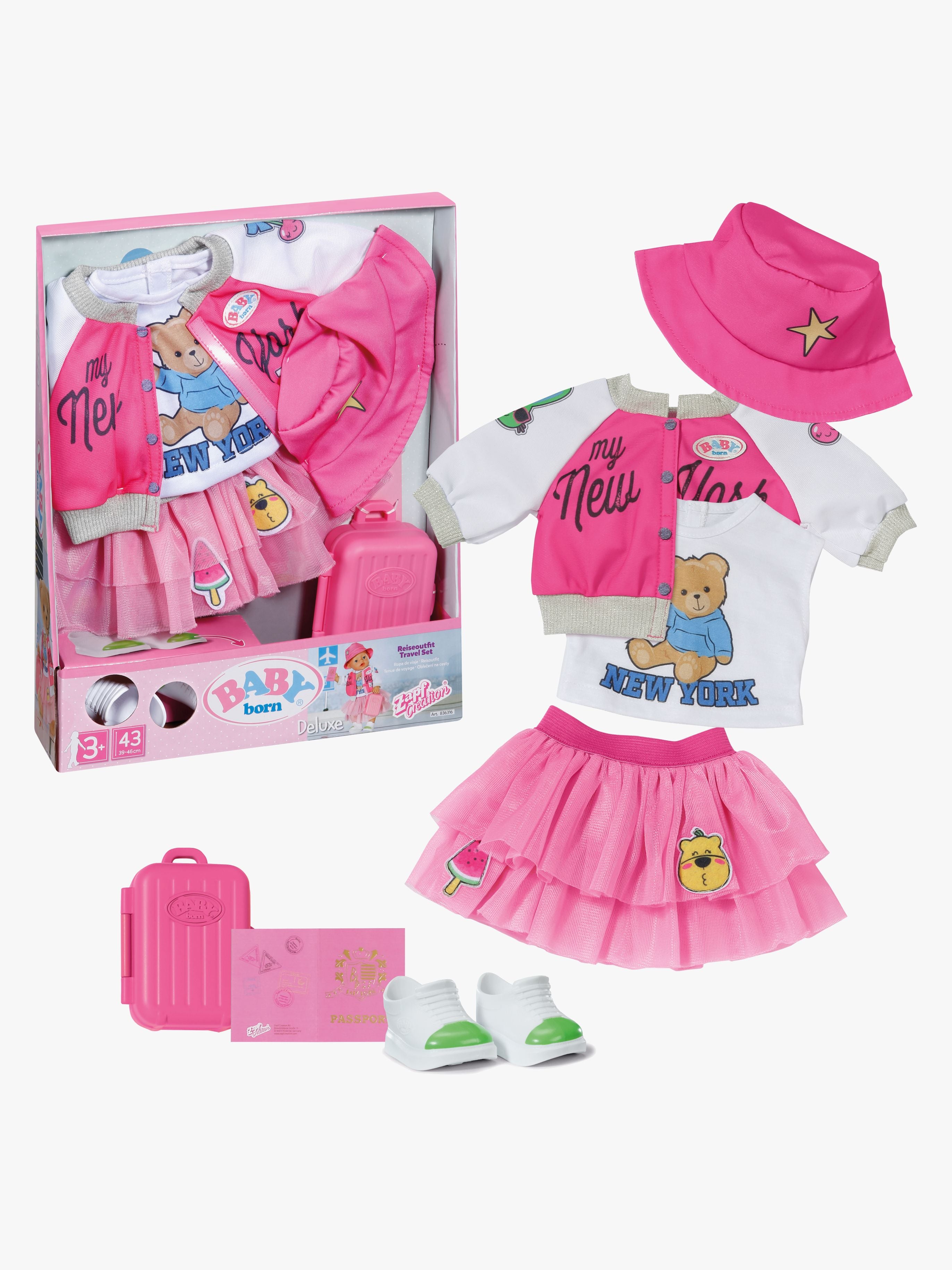 Giv din BABY born dukke et stilfuldt og komfortabelt look med det luksuriøse rejse-outfit, der er designet til dukker på 43 cm. Dette outfit kombinerer mode og funktionalitet, så din dukke er klar til eventyr, uanset hvor rejsen fører hen. Outfit'et inkluderer en trendy jakke, et par komfortable bukser og et flot sæt tilbehør, der gør det muligt for din dukke at være både fashionable og praktisk. Materialerne er af høj kvalitet, hvilket sikrer holdbarhed og en god pasform. Det lette design gør det nemt for børn at klæde deres dukker på og af, hvilket fremmer leg og kreativitet. Med dette rejse-outfit kan dit barn skabe fantastiske historier og scenarier, mens de leger med deres BABY born dukke. Uanset om det er en dag ud i parken eller en rejse til fjerne lande, vil dette luksuriøse outfit være den perfekte følgesvend for din dukke. Det er ikke bare et outfit; det er en mulighed for at stimulere fantasien og give timevis af underholdning. Gør dig klar til at tage på eventyr med stil!