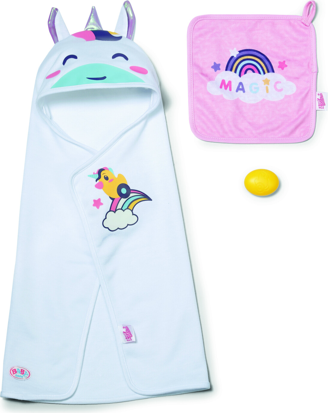 Giv din Baby Born dukke en stilfuld og komfortabel badeoplevelse med dette eksklusive hættehåndklædesæt. Baby Born står for kvalitet og design, som sikrer, at din dukke får det bedste.