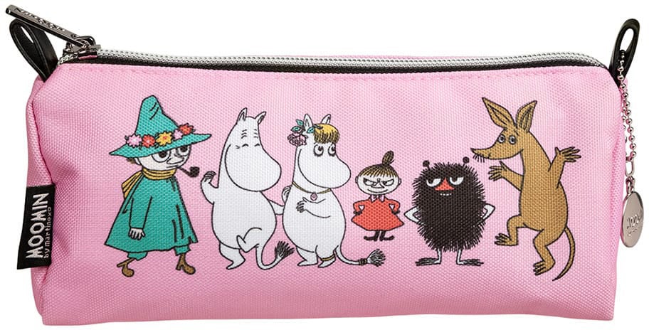 Fint penalhus fra Mumitroldene med en trekantet form. Perfekt til skolen. - Motiv fra Mumitroldene. - Rummelig. - Vandafvisende belægning. - Tekstilfor. - Lynlås. - Stort hovedrum. - Holdbar og alsidig. - Anbefalet alder: Fra 4 år. - Polyester.