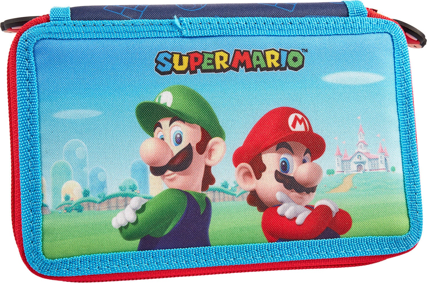 Et flot penalhus med 3 rum og motiv fra Super Mario. Penalhuset er fyldt med masser af tilbehør i form af en notesblok, to blyanter, en blyantsspidser, et viskelæder, en lineal på 15 cm og 12 farveblyanter.