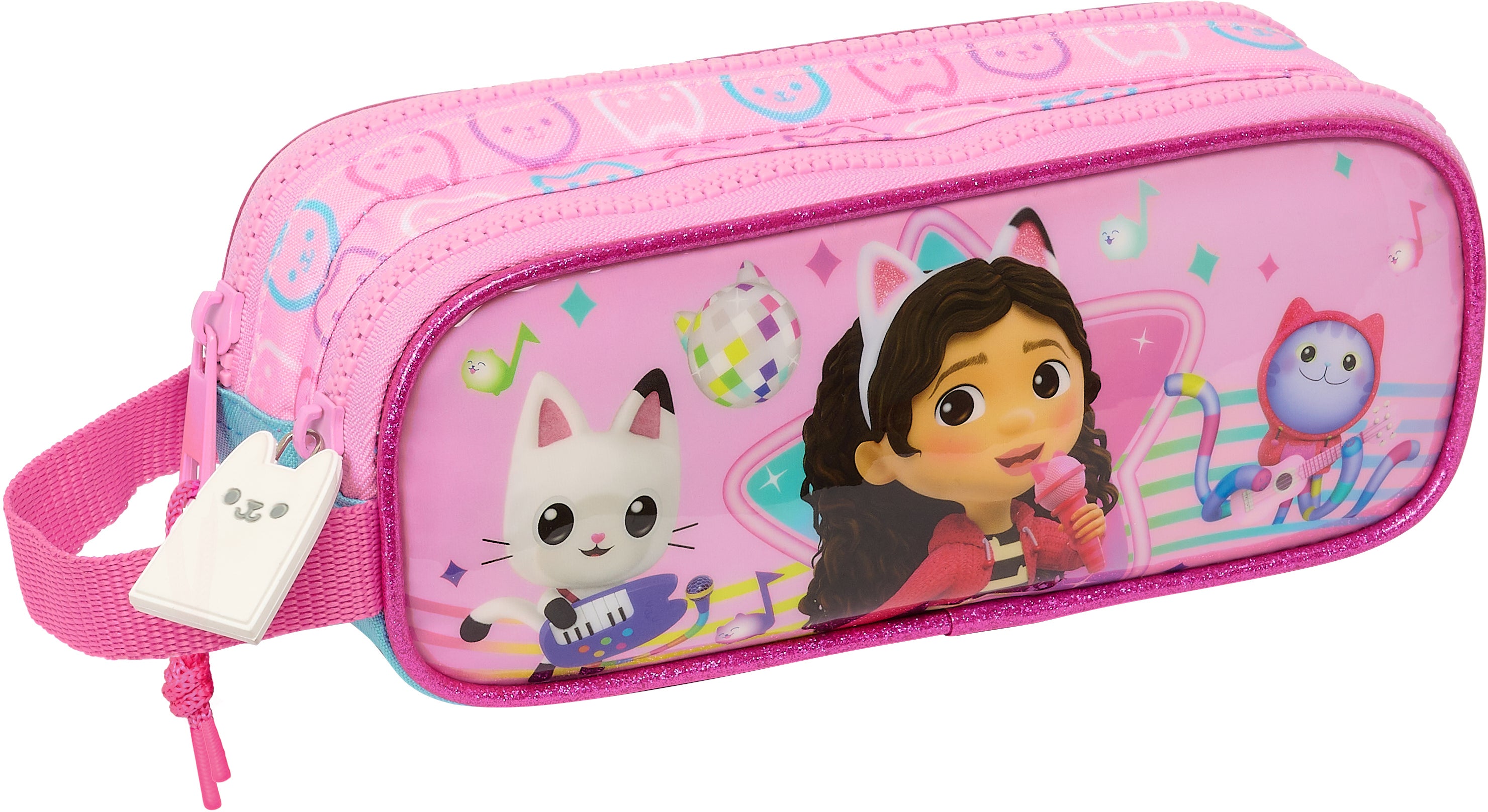Dobbelt penalhus fra Gabby's Dollhouse med to rummelige rum. Perfekt til skolen eller de kreative stunder. - Gabbys Dukkehustema. - To rum. - Rummeligt. - Praktisk bærehåndtag. - Lynlås. - Fungerer lige så godt hjemme som til skolen! - 300D polyester.
