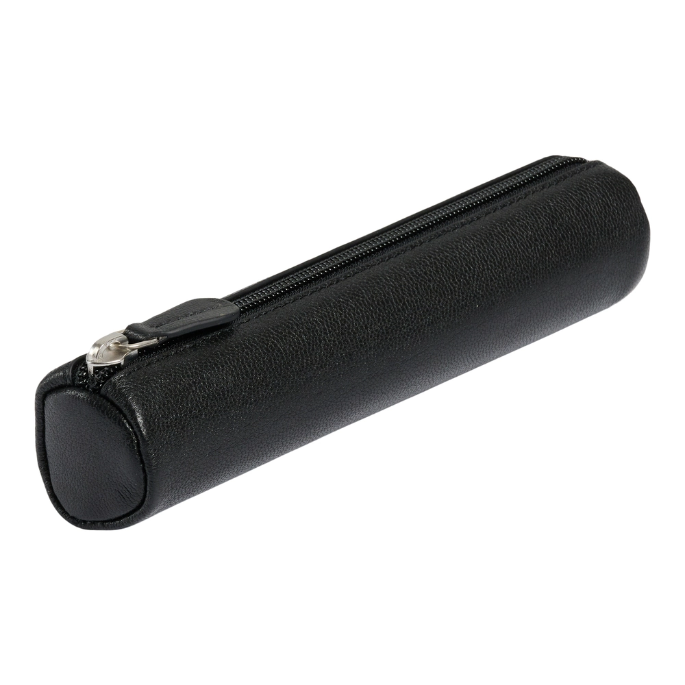 Penalhus rund ægte læder sort lille