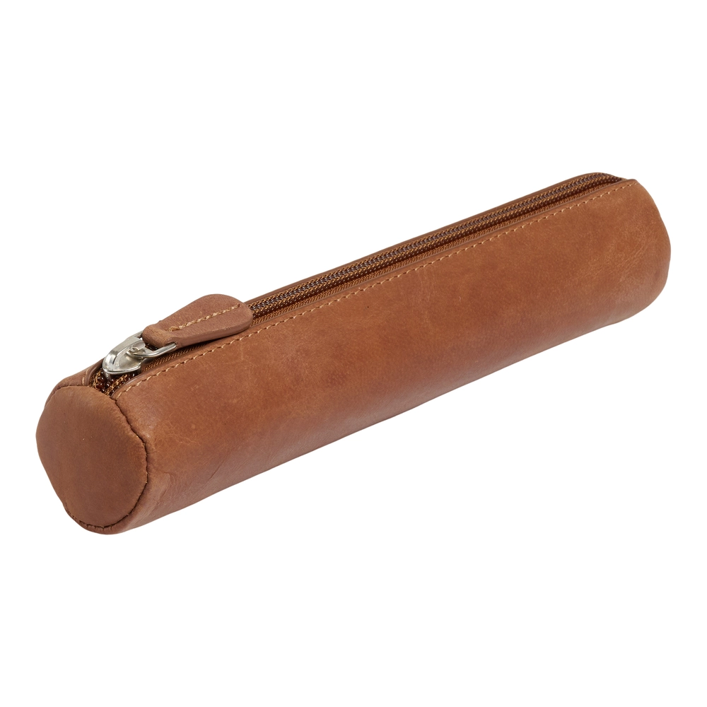 Penalhus rund ægte læder brun lille