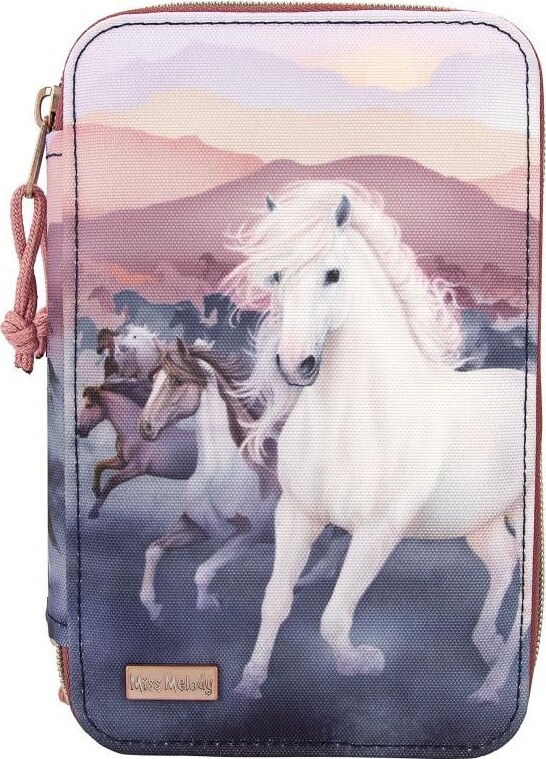 3-rums penalhus fra Miss Melody med det smukke hesteflok motiv mod en stemningsfuld aftenhimmel i...