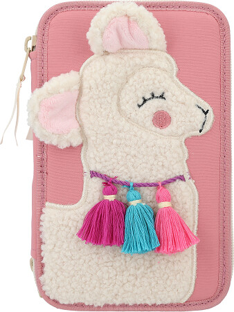 TOPModel penalhus i blød pink har en motiv på forsiden af en alpaca lavet af blød plys med...