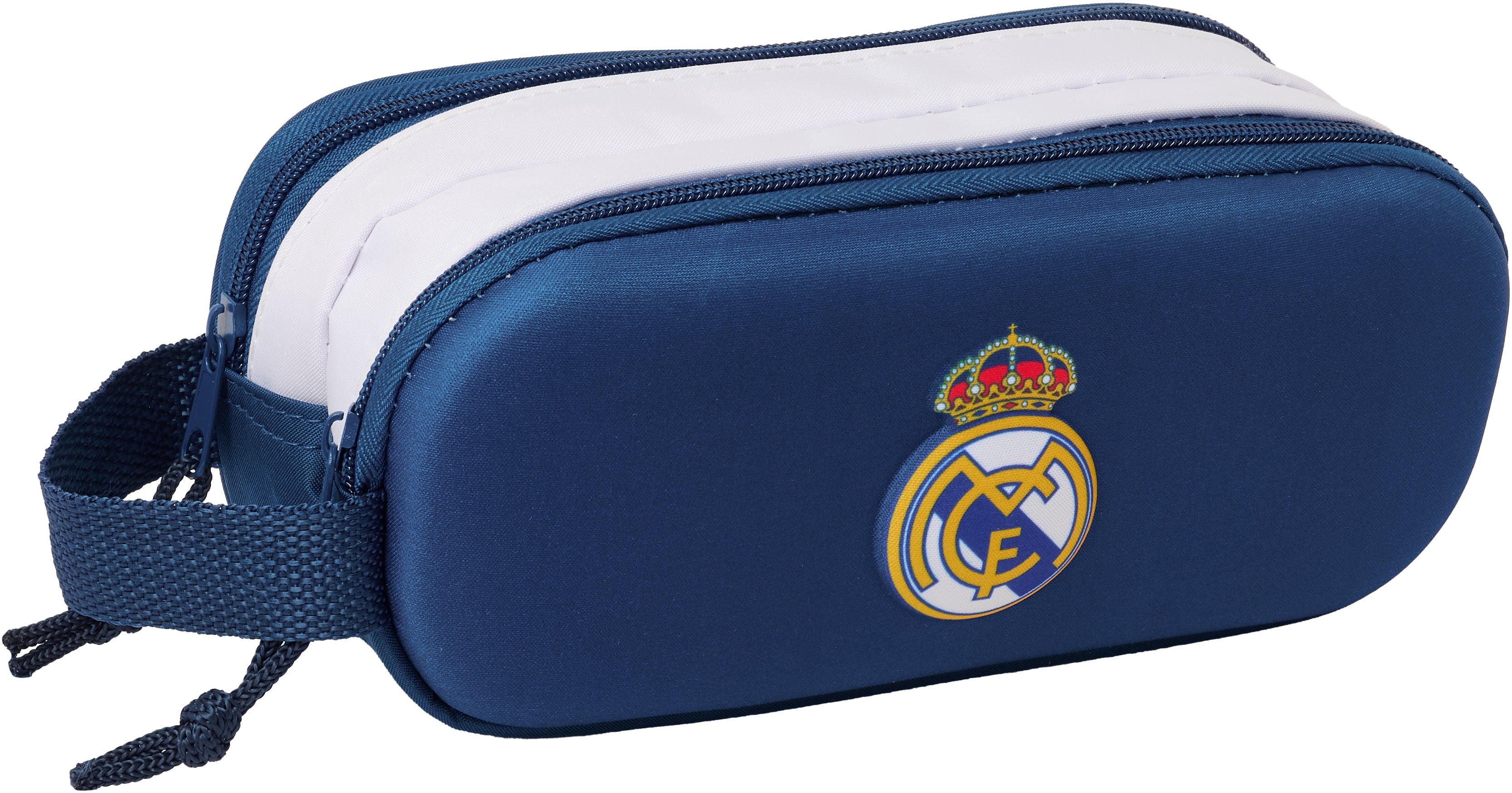Dobbelt penalhus fra Real Madrid med et praktisk design. Det har to rummelige rum, der holder styr på alt fra blyanter til viskelædere. Perfekt til skolen eller de kreative stunder. - To rum. - Rummeligt. - Lynlås. - Praktisk håndtag. - Fungerer lige så godt hjemme som til skolen! - 300D polyester, EVA.