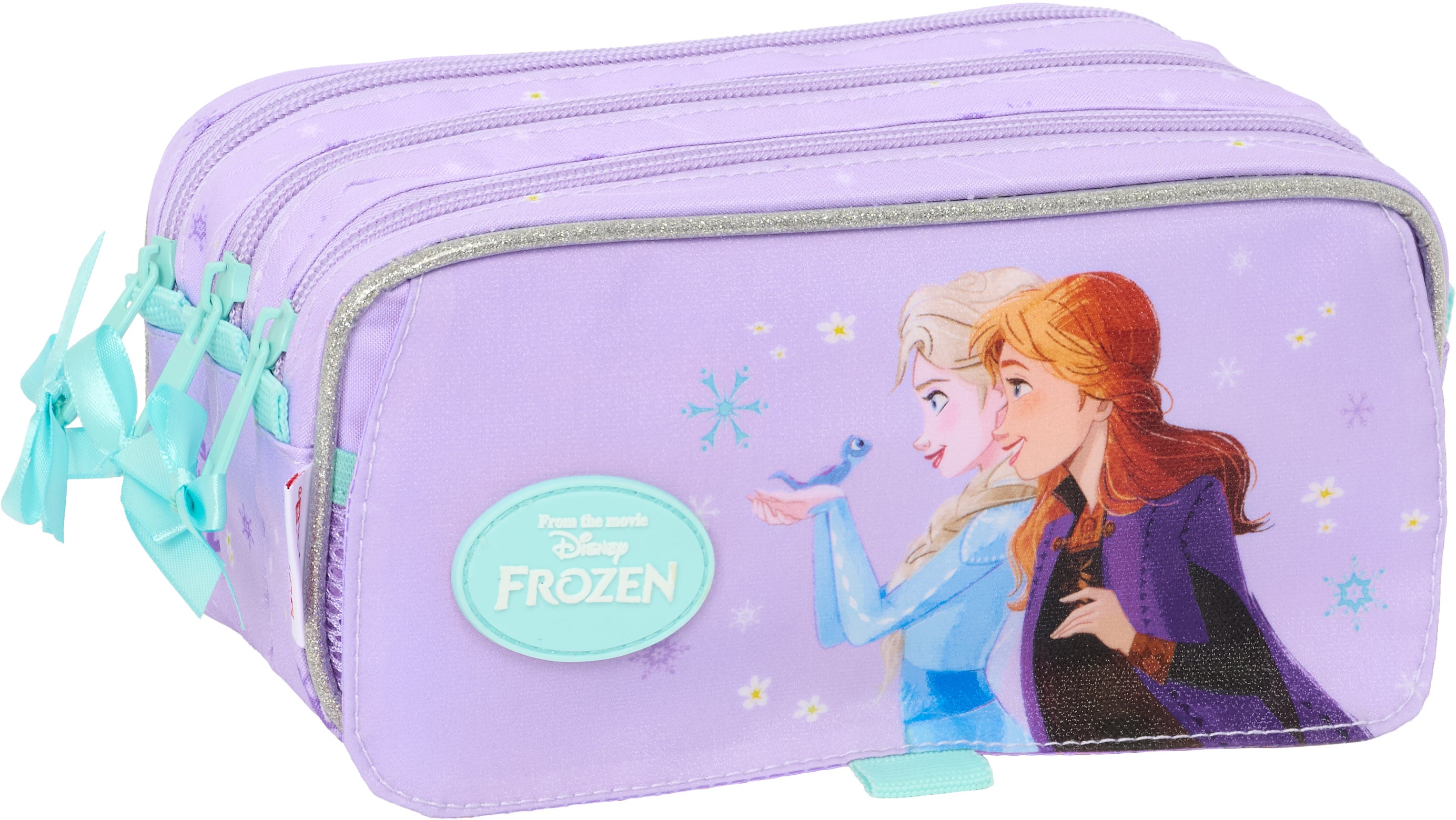 Penalhus med 3 rum fra Disney Frozen med tre praktiske rum. Perfekt til skolen eller de kreative stunder. - Motiv fra Disney Frozen. - Tre rum. - Lynlås. - Rummeligt. - Elastisk bånd. - Fungerer lige så godt hjemme som til skolen! - 300D polyester.
