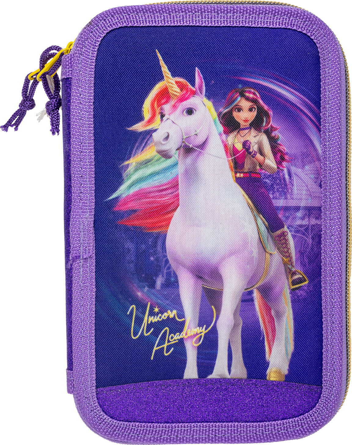 Stor - Unicorn Academy - Fyldt Dobbelt Penalhus - 19.5 X 12.5 X 5 Cm