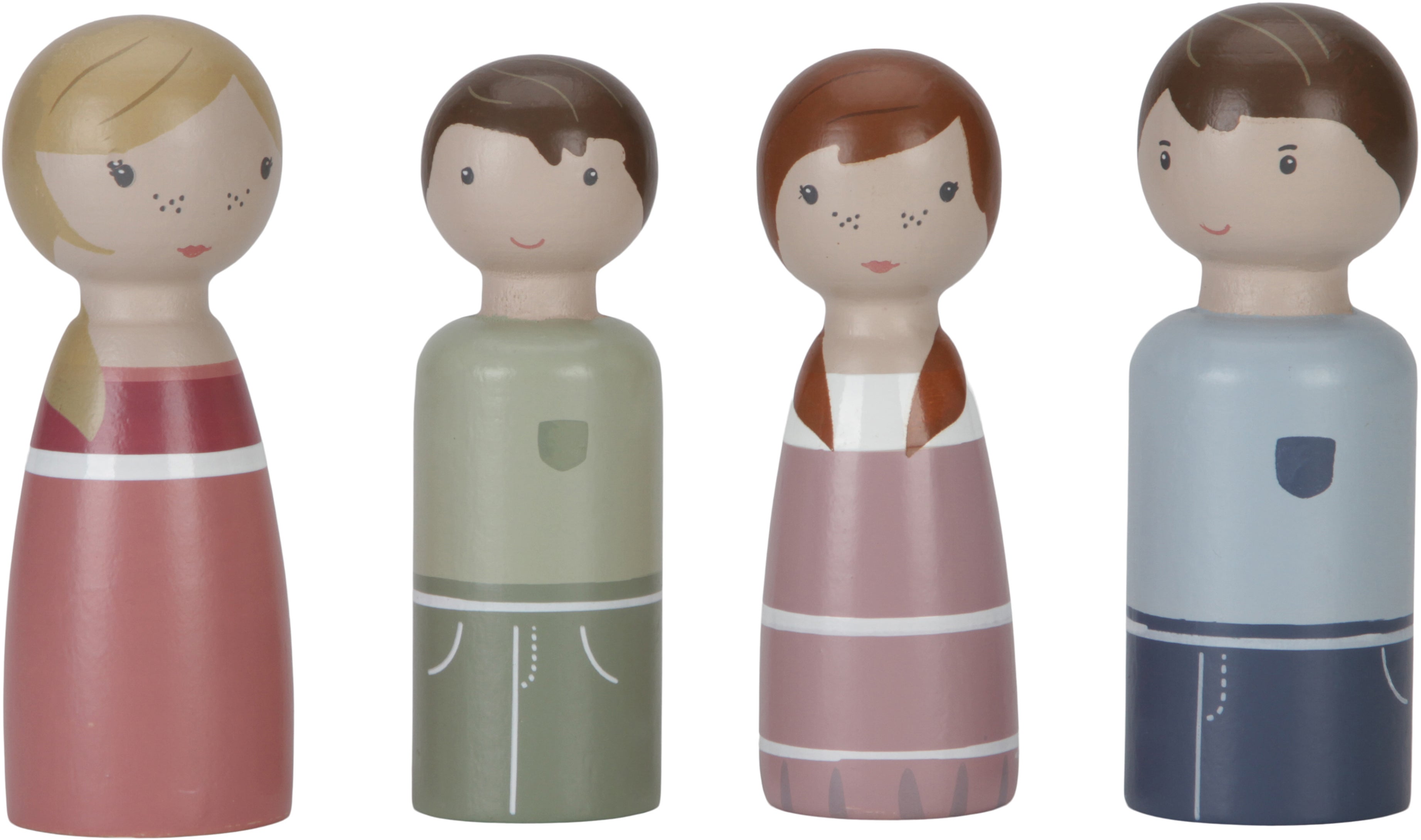 Dukkesæt fra Little Dutch med et sødt design. Perfekt at kombinere med dine legesæt. - Denne familie er et sæt med trædukker, der består af en far, en mor, en søn og en datter. - Gør dukkehuset komplet. - Mål: H 5 x B 2 cm. - CE-mærket. - Anbefalet alder: Fra 2 år. - Træ.