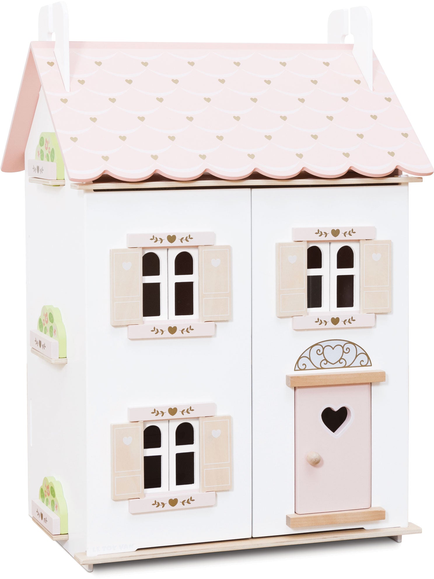Sųdt dukkehus fra Le Toy Van med sjove legeområder. Perfekt til timevis af fantasifuld leg. - To etager. - Lille loftsrum i det åbningsbare tag. - Åbn og luk dukkehuset på forsiden. - Dęmpede farver. - Vinduer og dųre, der kan åbnes. - Moderne og tidlųst design. - CE-męrket. - Figurer og mųbler medfųlger ikke. - Anbefalet alder: Fra 3 år. - Trę.