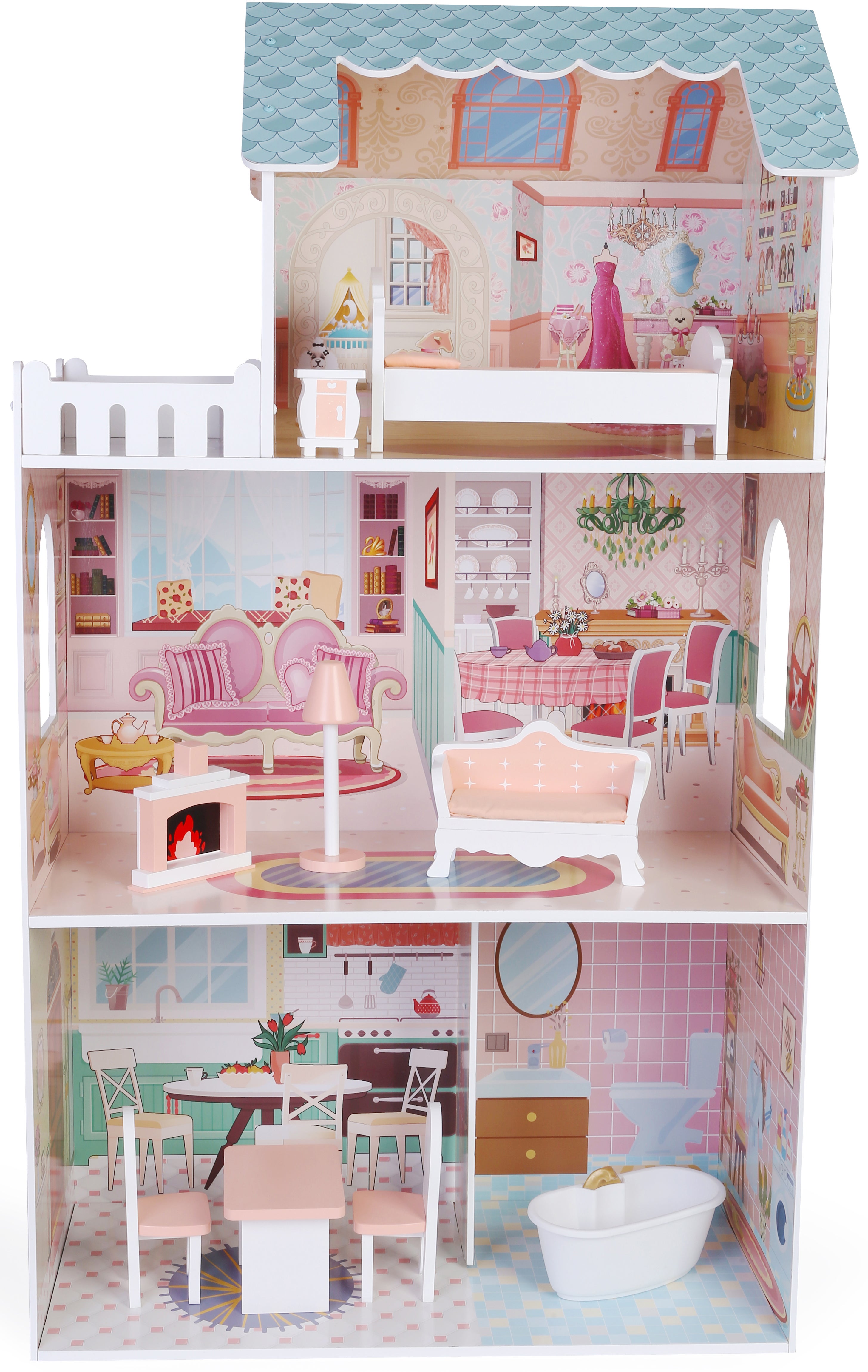 Stort dukkehus fra Edufun med mange sjove legeområder med medfølgende møbler til at indrette huset med. Perfekt til timevis af fantasifuld leg. - 3 etager. - Komplet møbelsæt til dukkehus. - Flotte detaljer. - Dæmpede farver. - Unikke tapeter i alle rum. - Moderne og tidløst design. - Udvikler kognitive og finmotoriske færdigheder. - CE-mærket. - Anbefalet alder: Fra 3 år. - Træ, papir, stof, metal.