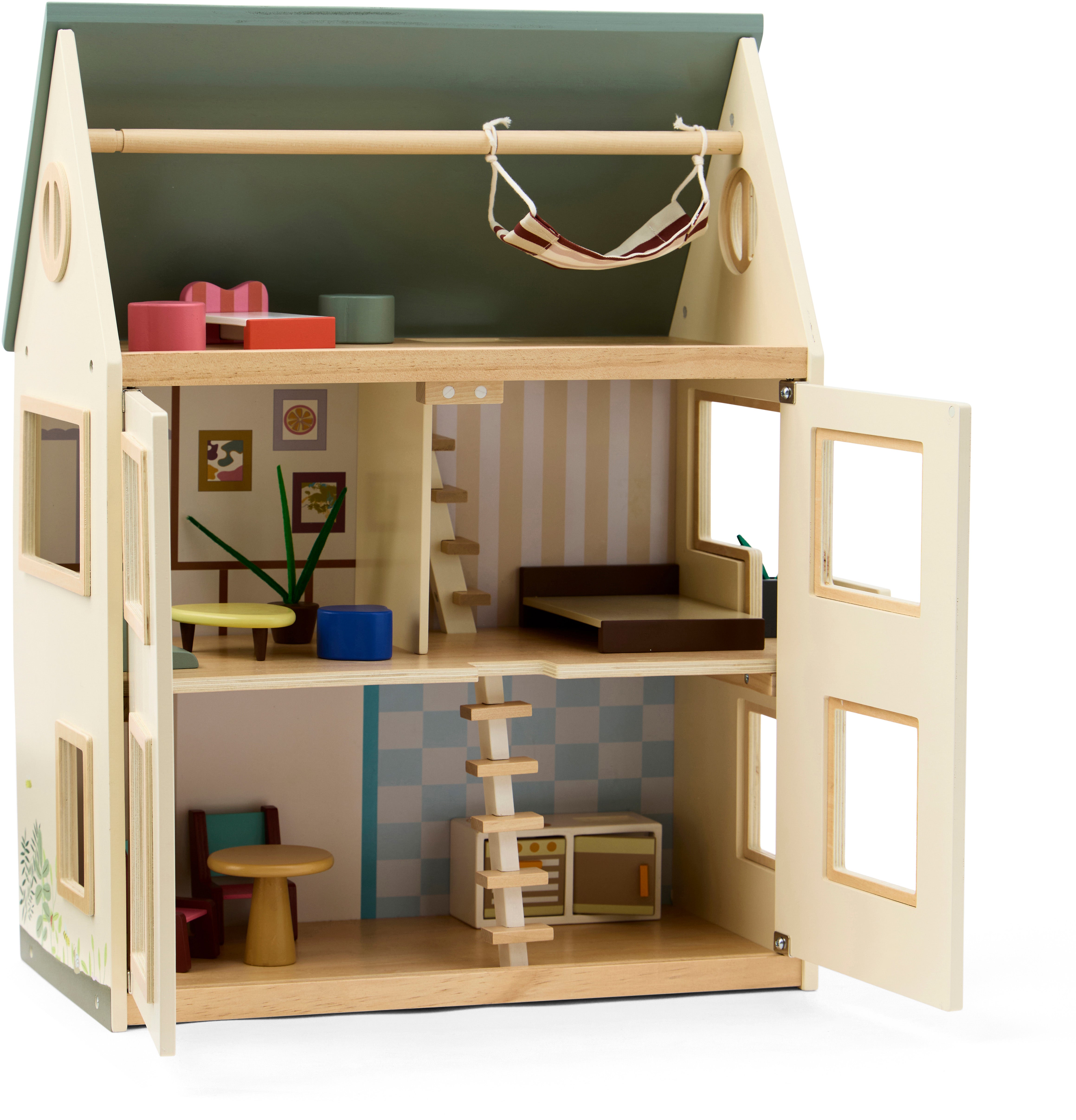 Dukkehus fra Kid's Concept med mange sjove legeområder med medfølgende møbler til at indrette huset med. Perfekt til timevis af fantasifuld leg. - 3 etager. - Komplet møbelsæt til dukkehus. - Flotte detaljer. - Dæmpede farver. - Unikke tapeter i alle rum. - Moderne og tidløst design. - Udvikler kognitive og finmotoriske færdigheder. - Anbefalet alder: Fra 3 år. - Træ, polyester, bomuld.