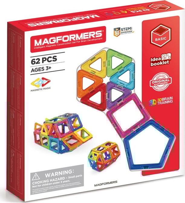 Med Magformers 62 dele får børn en fantastisk mulighed for at bygge alt fra enkle figurer til komplekse 3D-konstruktioner – helt uden brug af lim eller værktøj. De stærke magneter klikker nemt sammen og gør legen magisk!