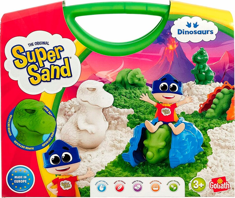 Giv dit barn en verden af kreativ leg med Super Sand - Dinosaurer Legesand Kuffert Sæt. Dette fantastiske legetøj kombinerer sjov og læring, og det er designet specielt til små hænder. Med det farverige og formbare legesand kan børnene skabe deres egne dinosaurlandskaber, mens de udvikler deres motoriske færdigheder og fantasi. Super Sand er ikke kun sjovt, men også sikkert. Det er lavet af 100% ikke-giftige materialer, så du kan være tryg ved, at dit barn kan lege med det uden bekymringer. Kuffert sættet gør det nemt at opbevare sandet og de medfølgende dinosaurfigurer, så I kan tage legen med overalt uanset om det er i haven, i parken eller hjemme i stuen. Dinosaurerne, der følger med sættet, tilføjer en ekstra dimension til legene og opfordrer til historiefortælling og fantasifulde scenarier. Med et væld af muligheder for kreativ udfoldelse er Super Sand - Dinosaurer Legesand Kuffert Sæt den perfekte gave til alle små dinosaurfans. Lad dit barn dykke ned i en verden af sjov og læring, mens de udforsker og skaber med dette unikke legesand sæt!