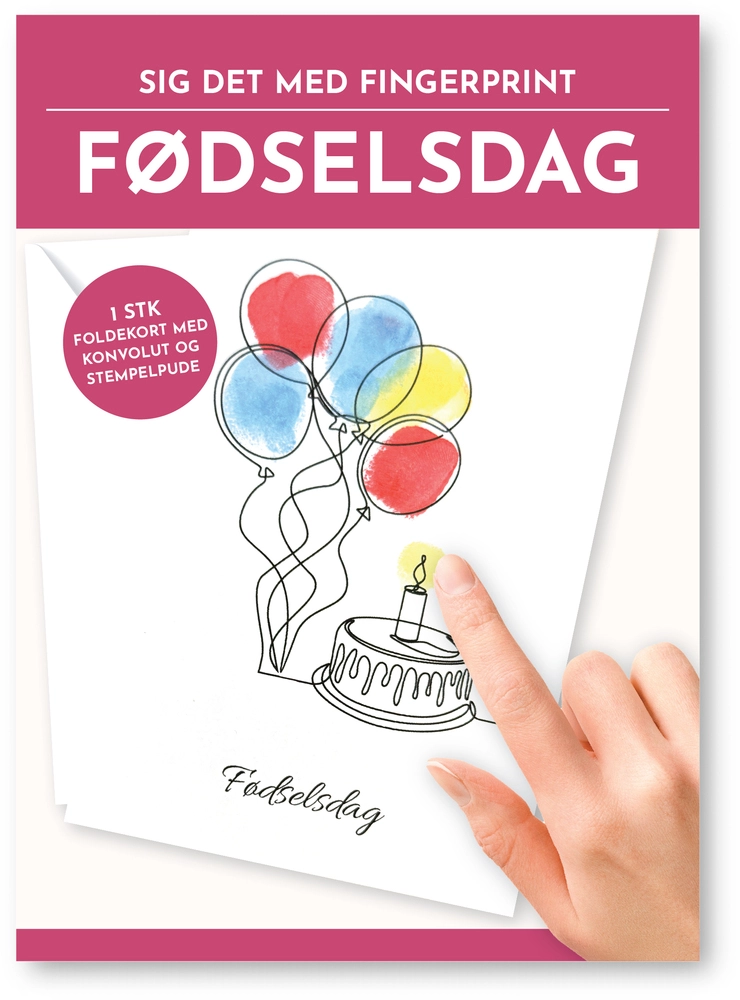 Fingerprint kort fødselsdag balloner m/konvolut stempelpude