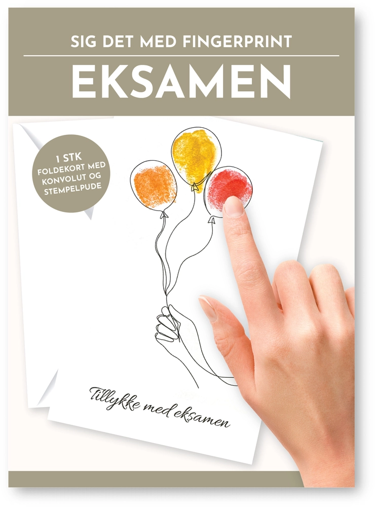 Fingerprint kort eksamen balloner m/konvolut og stempelpude