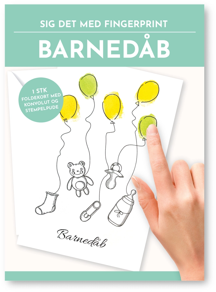Fingerprint kort barnedåb balloner m/konvolut og stempelpude