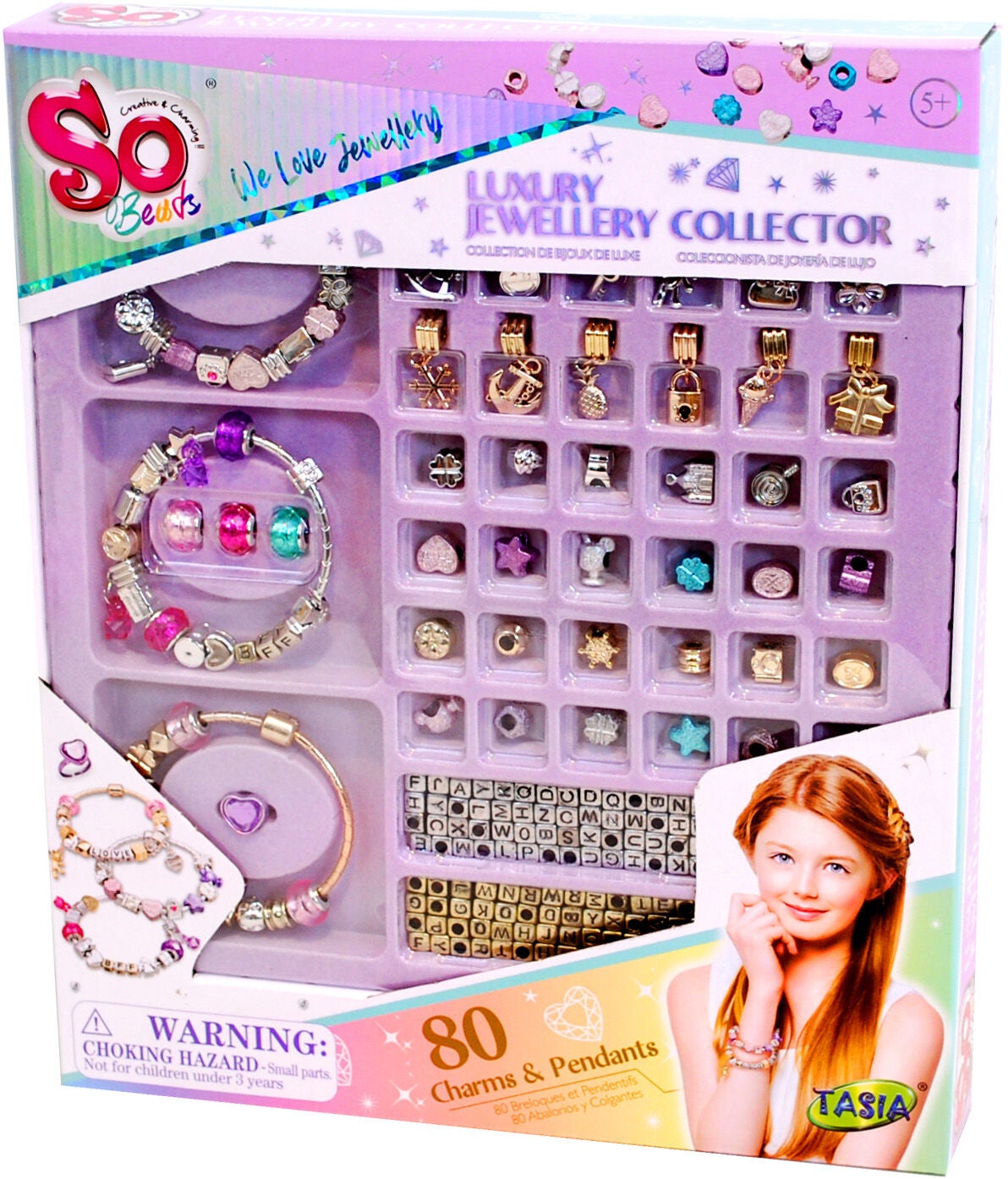 Lav dine egne smykker med dette glamourøse perlesæt fra So Beads med 80 dele. Sættet indeholder masser af sjovt tilbehør og andre ting, som du skal bruge til at lave dine egne, smarte armbånd! - Indeholder 3 armbånd og 80 perler og vedhæng. Anbefalet alder: Fra 8 år.