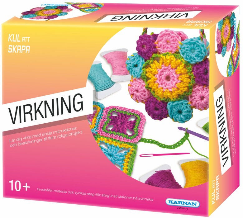 Kreasæt fra Kärnan med enkle instruktioner. Lær at hækle og lav flere sjove projekter som fx en taske, hue eller dækkeserviet. Perfekt til mange timers kreativ leg og kunsthåndværk. 6 stk./pak. Anbefalet alder: Fra 10 år.