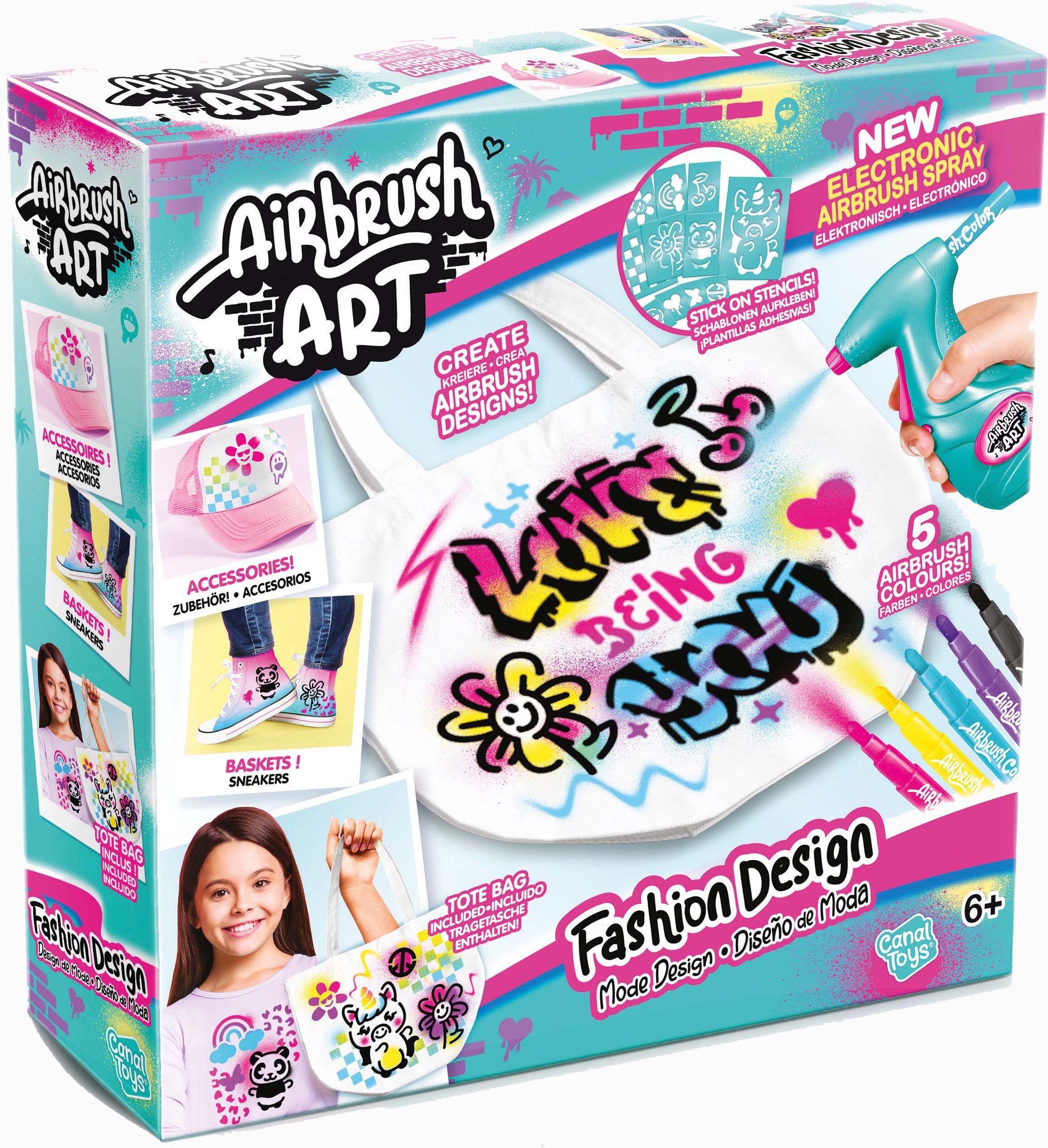 Kreasæt fra Style 4 Ever med en mulepose, som man kan tegne på. Perfekt til kreative stunder. - Indeholder: 1 mulepose, 1 airbrush, 6 airbrushfarver, 3 stencilskabeloner, 1 brugsvejledning. - Vask og start om igen lige så mange gange, du vil. - Kan bruges på tøj og andet tekstiltilbehør. - Farvelæg og lav mønstre. - Selvklæbende skabeloner. - Batteridrevet. - CE-mærket. - Anbefalet alder: Fra 6 år. - Plastik, stof. - Batterier medfølger ikke.
