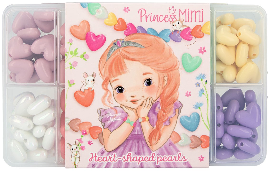Perlearmbåndsæt fra Princess Mimi med hjerteformede perler. Perfekt til kreative stunder. - Indeholder: 135 perler, 2 ruller med tråd. - Lav dine egne smukke smykker. - Farverigt design. - Kun fantasien sætter grænserne. - CE-mærket. - Anbefalet alder: Fra 5 år. - Plastik, gummi.