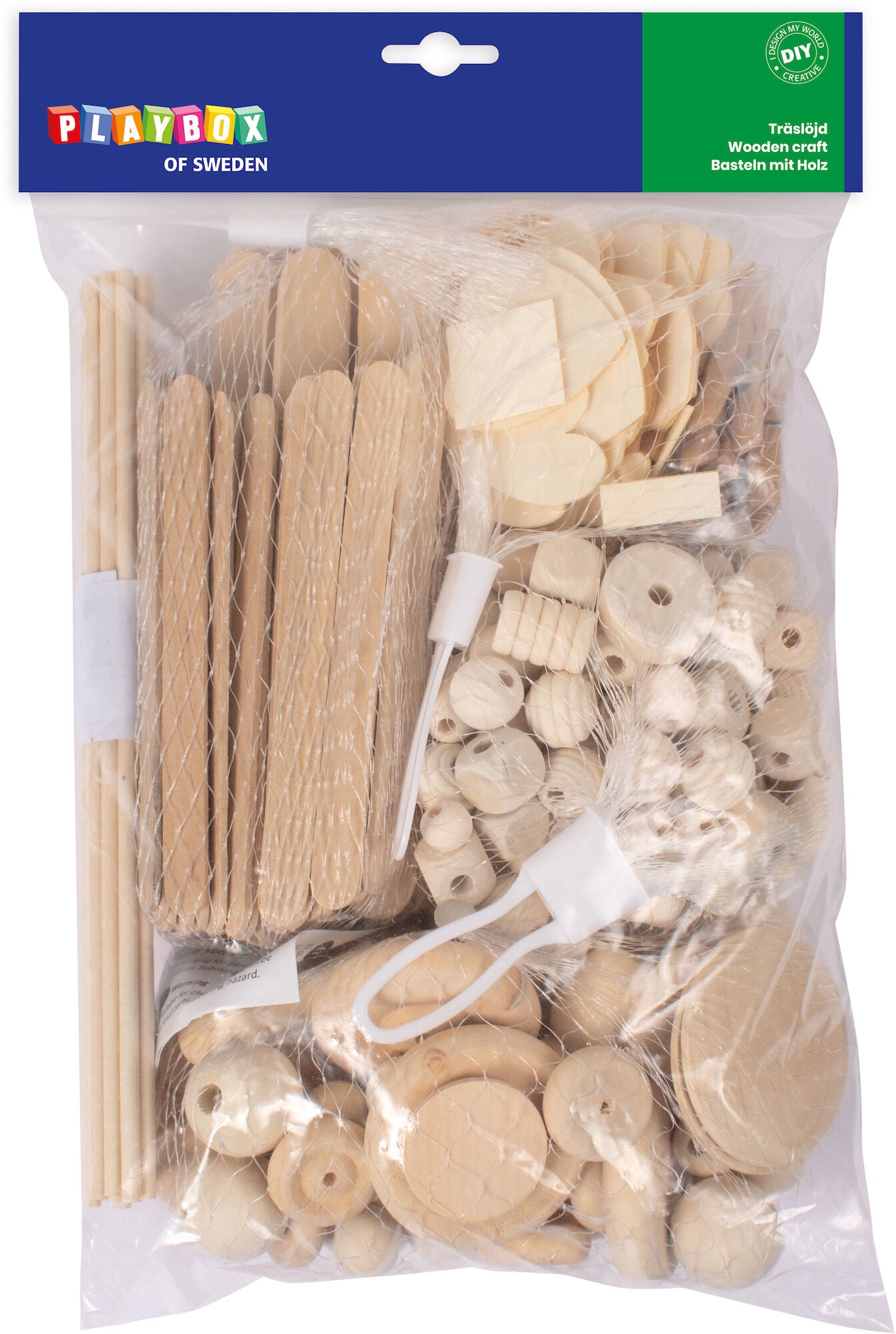 Kreasæt fra Playbox med en masse former i træ, som kan kombineres på mange kreative måder. Perfekt for dit barn at slippe al sin kreativitet løs med! CE-mærket. Anbefalet alder: Fra 5 år.