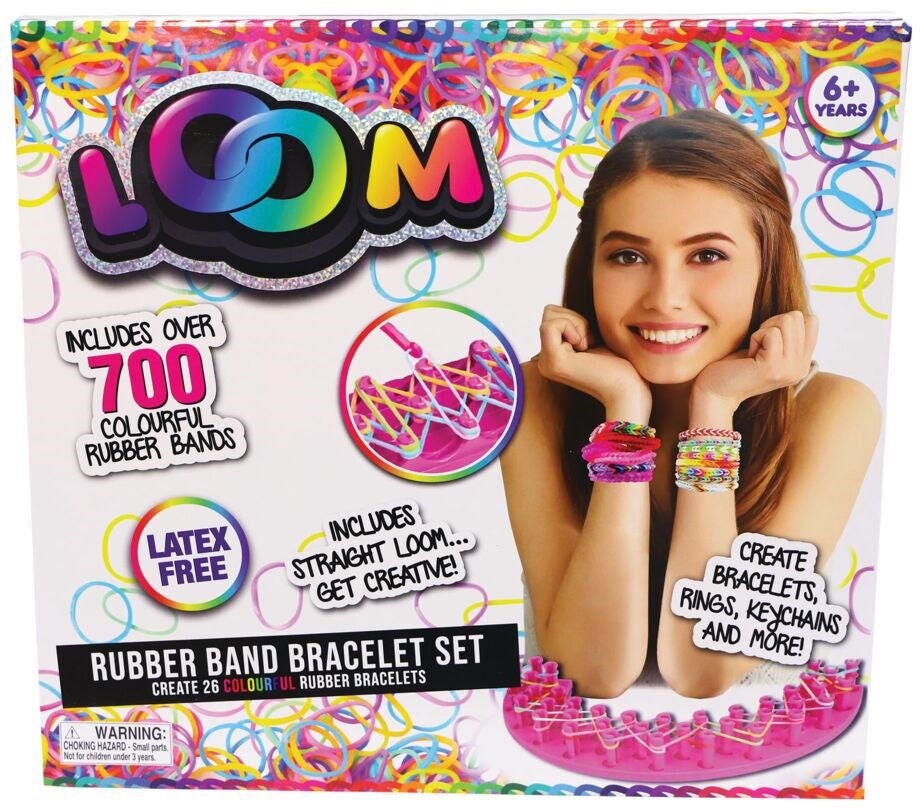DIY sæt fra Loom med over 700 elastikker. Skab dine egne farverige gummiarmbånd, ringe og nøgleringe ved hjælp af det medfølgende væveværktøj. Der medfølger en instruktionsbog. CE-mærket. Uegnet for børn under 3 år på grund af små dele. Anbefalet alder: Fra 3 til 8 år.