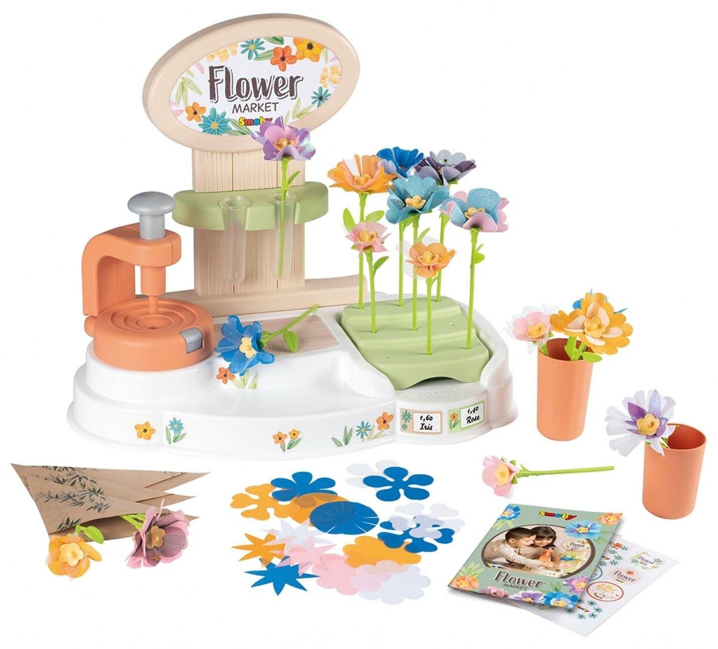 Kreasæt fra Smoby med tilbehør der kan bruges til at lave stofblomster med. Det har en medfølgende instruktionsbog til inspiration. Perfekt til timevis af kreativ leg. Indeholder: 47 blomsterblade af stof, 16 stilke, 16 blomsterstilke, 16 pistiller, 2 vaser, 2 tuber, 1 klistermærkeark, 1 instruktionsbog. CE-mærket. Smoby Blomstermarked blev i 2023 udnævnt til Årets Kunsthåndværkslegetøj af lege- og babybranchen i Sverige. Anbefalet alder: Fra 3 år. Plastik, stof.