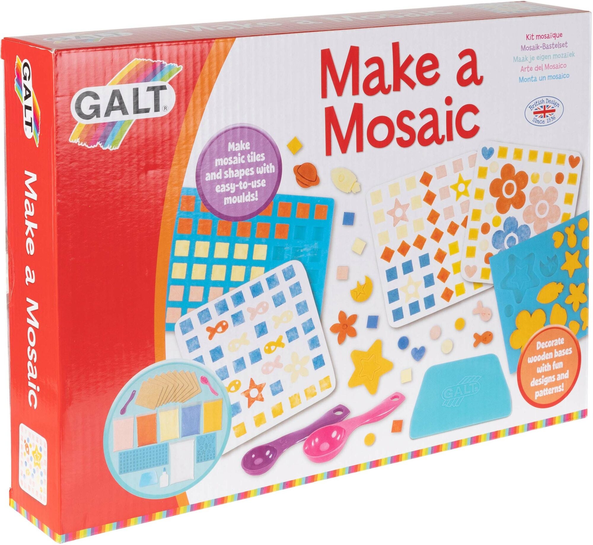 Kreasæt fra Galt med forskelligt tilbehør, som du kan bruge til at designe dine egne, unikke mosaikkunstværker med. Det har seks gipsposer i forskellige farver og en dekorationsform. Dekorér ni farverige træbaser med mosaikstykker og forme ved at bruge de færdige forme og gipsmassen. Perfekt til kreative aktiviteter. Indeholder: gips i 6 forskellige farver, mosaikform, dekorationsform, 9 træbaser, værktøj, 2 måleskeer, lim og vejledning. CE-mærket. Anbefalet alder: Fra 5 år.