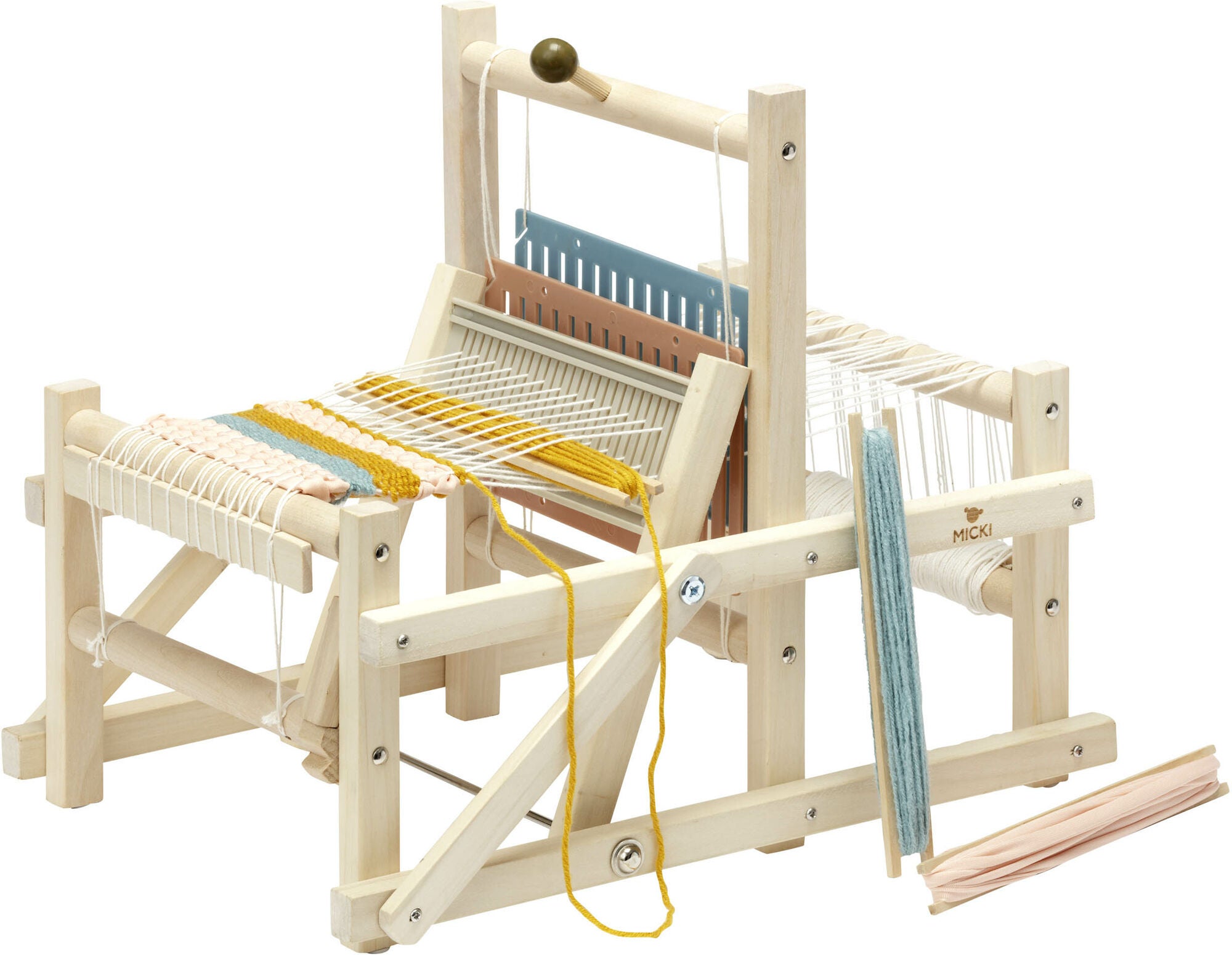 Klassisk vævestol fra Micki i træ med 3 forskellige slags garn. Lad din kreativitet få frit løb og væv duge, tæpper eller lige præcis det, du har lyst til. CE-mærket. Anbefalet alder: Fra 3 år. Træ, garn.