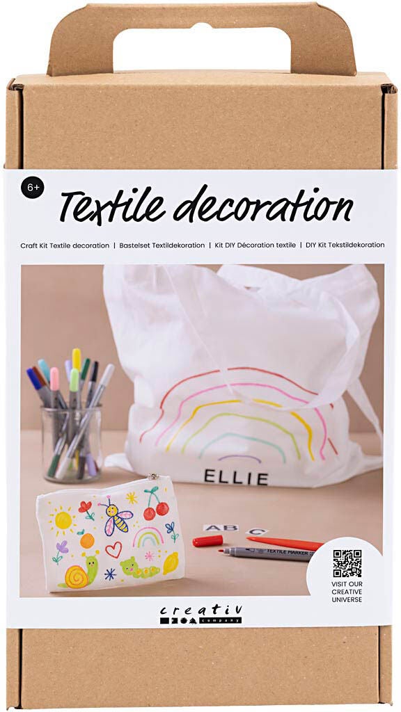 Sjovt, farverigt DIY tekstildekorationssæt fra CreativCompany, der indeholder alt materiale og instruktioner, du skal bruge for at komme i gang med at skabe. Perfekt til det kreative barn, der gerne vil dekorere sine tekstiler. Anbefalet alder: Fra 6 år.