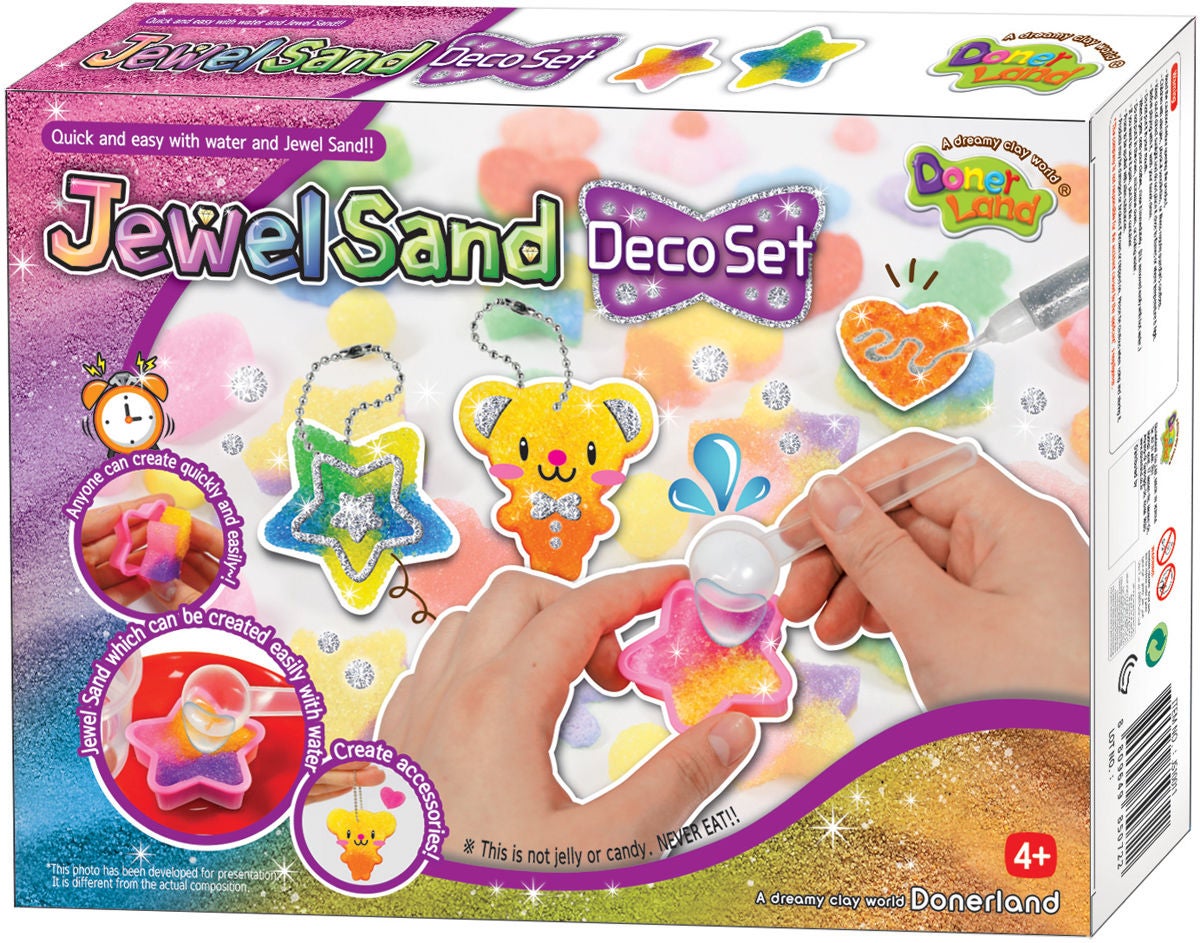 Sjovt gør-det-selv-sæt fra Donerland. Med dette sæt kan du skabe dine egne smykker, dekorationer og kunstværker. Sandet er let at arbejde med og det eneste du skal tilsætte, er vand. Derefter kan du forme og modellere i de medfølgende forme. Anbefalet alder: Fra 4 år.