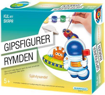 Sjov Glow in the dark gipsfigur fra Kärnan. Støb gipsfigurerne i plastikformene og mal dem derefter med de medfølgende farver. En sjov aktivitet for børn fra 5-årsalderen og op. CE-mærket. Indeholder 6 figurer. Gipsen tørrer på ca. 30 min. Anbefalet alder: Fra 5 til 12 år.