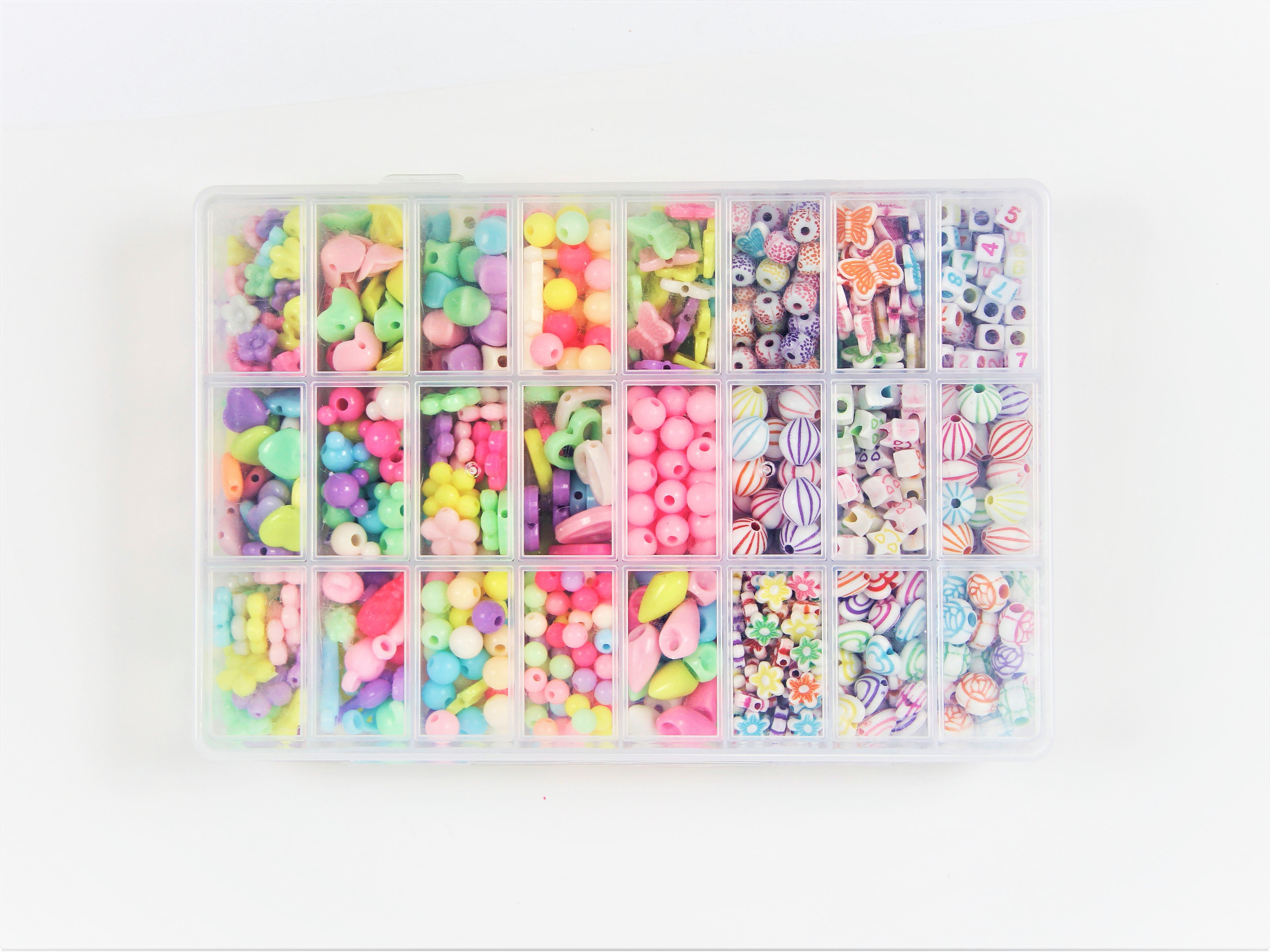 DIY-sæt fra Suntoy med en masse fine perler. Perfekt til at skabe din egen stil med. - Indeholder 24 forskellige slags perler og 420 perler i alt. - Lav dit armbånd efter din egen fantasi. - Let at opbevare. - CE-mærket. - Anbefalet alder: Fra 3 år.