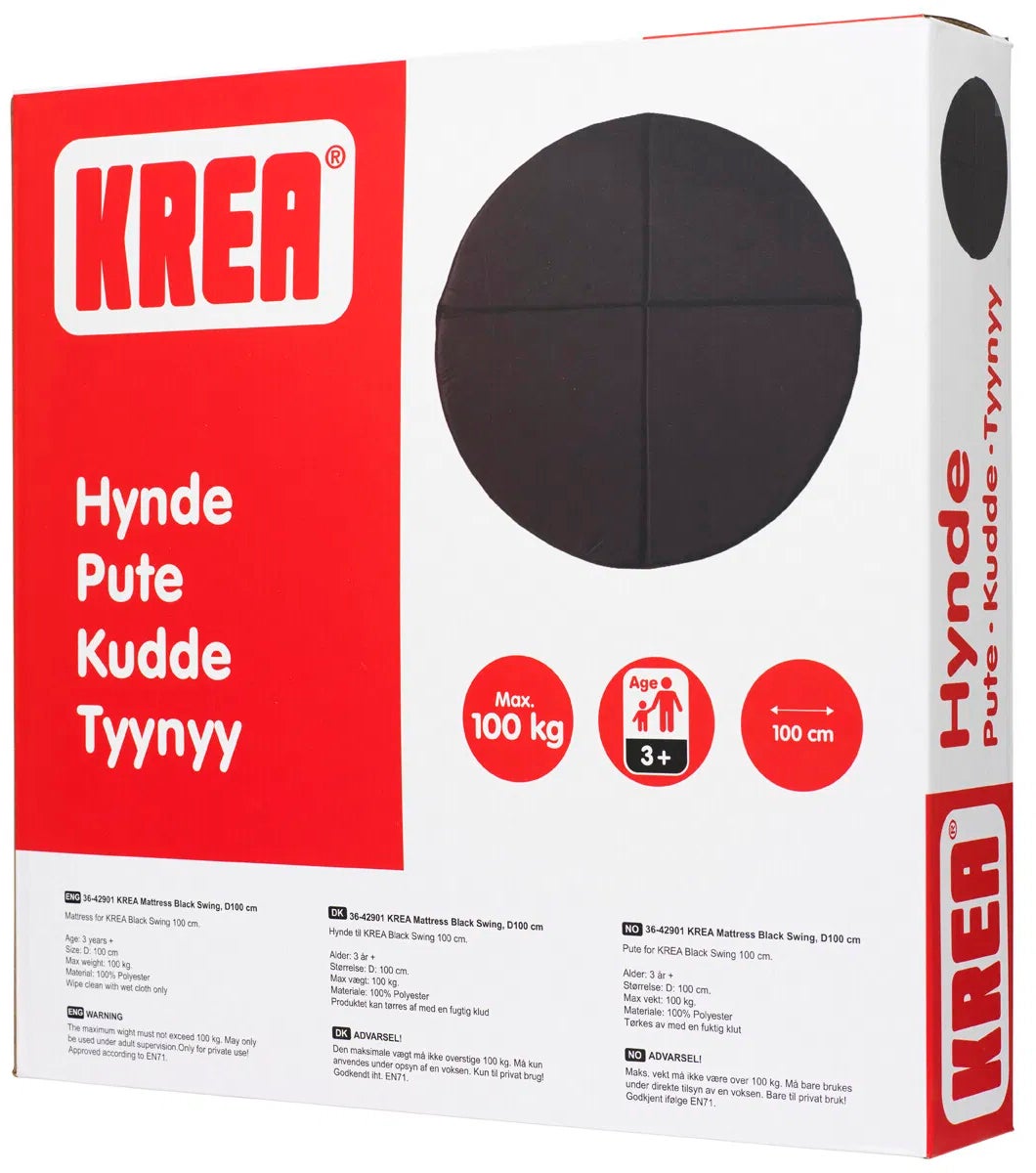Madras til gynge fra KREA med et enkelt design. Perfekt at lege med både udendørs og indendørs. - Gør gyngningen til en behagelig oplevelse med den 2,5 cm tykke madras, der passer til KREA SWING. - Madrassen bruges udendørs og er vandafvisende. - Det anbefales dog at opbevare madrassen indendørs, når den ikke er i brug, for at forlænge dens levetid. - Mål: D 100 cm. - CE-mærket. - Anbefalet alder: Fra 3 år. - Plastik, polyester.