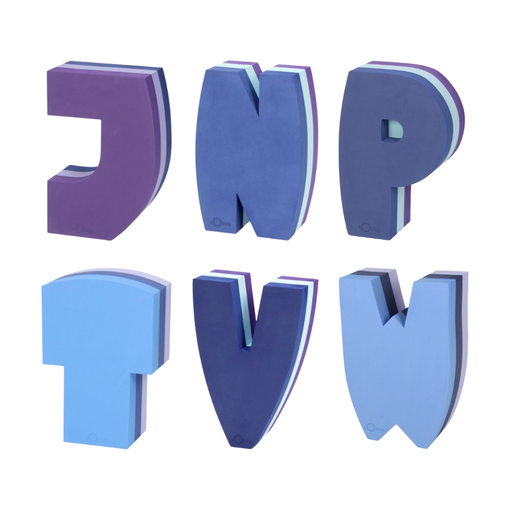 Når man starter i skole skal man lære bogstaverne, så man kan lære at læse og skrive. Men langt de fleste børn kender allerede bogstaver, når de starter i skole. De kan faktisk slet ikke lade være. Det er en del af den herlige nysgerrighed og lærevillighed, som langt de fleste børn besidder. Har du også en bogstavinteresseret tumling eller et sprogbegejstret børnehavebarn derhjemme, vil de nye tumlebogstaver fra bObles uden tvivl vække lykke.Med tumlebogstaverne kan I helt bogstavelig talt (tøhø) komme godt i gang med bogstavlegene. Har I flere tumlebogstaver, kan I f.eks. skrive små ord, øve vokaler og konsonanter eller måske ligefrem stave dit barns navn. I kan også selv opfinde lege, hvor tumlebogstaverne kan komme i spil. F.eks. en bogstavstafet, hvor det lidt større barn skal nævne ord med det forbogstav, som tumlebogstavet har. Tumlebogstaverne kan også bruges til dit barns tumlelege. Brug dem til at øve balancegang, til at lege jorden-er-giftig, eller måske som skammel, når der skal tegnes ved sofabordet.På grund af de forskellige tumlebogstavers udformning vil de naturligvis også kunne bruges på forskellig vis - og dit barn vil helt sikkert selv få mange idéer til sjove lege, når først tumlebogstavet er i hus.bObles tumlemøbler er udført i kraftigt EVA-skum. Den skridsikre overflade er blød, let at rengøre og sætter ikke mærker i gulvet. Testet til børn.Farver: Tumlebogstaverne leveres i farverne multi blå/lilla. Det er ikke muligt selv at vælge farve.