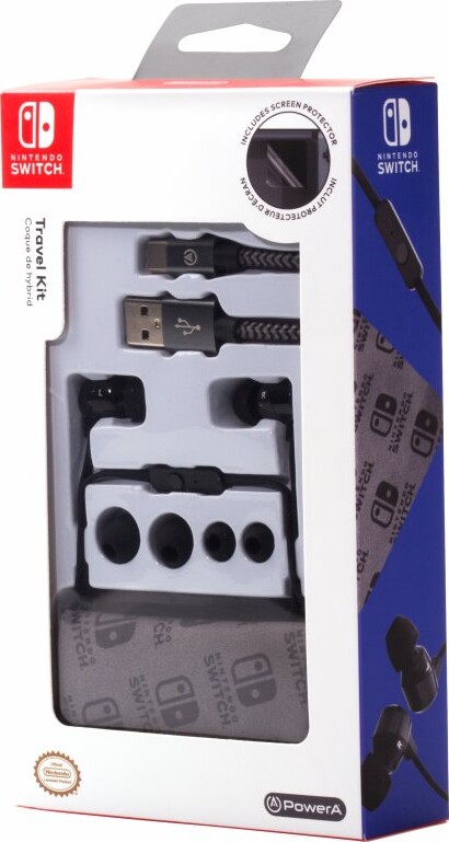 Nintendo Switch Travel Kit Med Bl.a. Høretelefoner, Kabel Og Skærmbeskytter