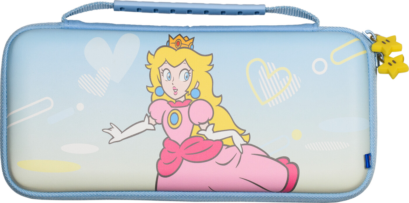 Rejs med stil med HORIs Slim Tough Pouch (City Pop Peach), der er kompatibel med både Nintendo...